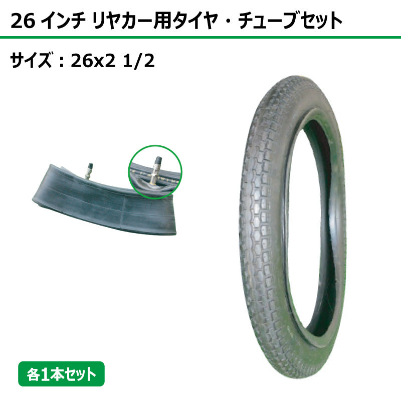 26インチ 26x2 1/2 リヤカー空気入りタイヤ・チューブセット 各1本