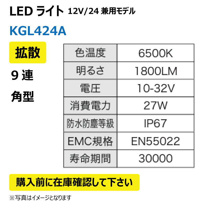 KBL製LED作業灯。農業機械に取り付けが可能です。 ・ノイズキャンセラー付き(電波障害対応) ・放熱、耐久性に優れたアルミボディ ・消費電力を抑え30,000時間の高寿命 ・12/24V対応 |