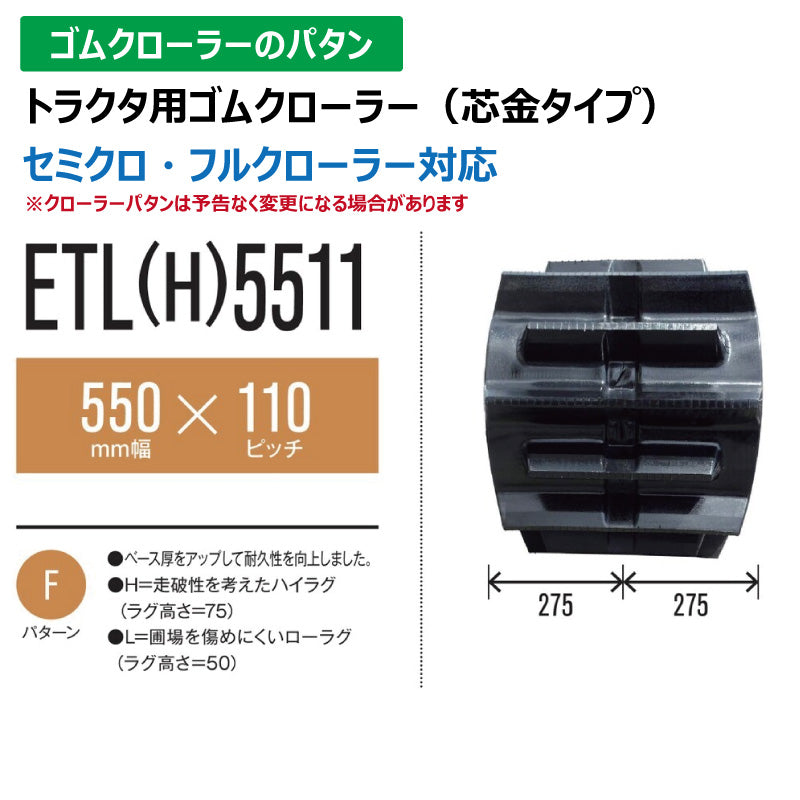 【ETH5511 550-110-*】TN トラクタ用ゴムクローラー